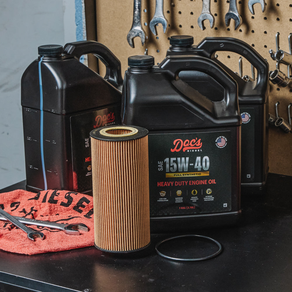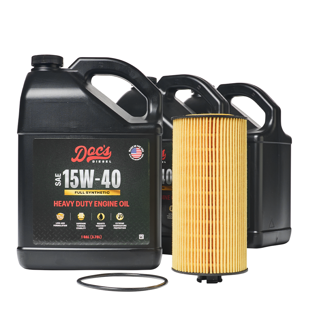 Our Oil Change Kits include high-efficiency, heavy-duty oil filters and Doc’s Diesel Oil for proven protection and performance that holds up to heat, towing, and long hauls.