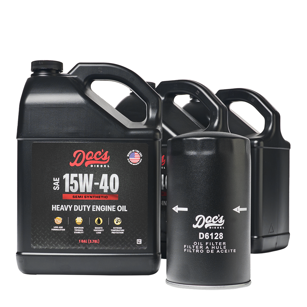 Our Oil Change Kits include high-efficiency, heavy-duty oil filters and Doc’s Diesel Oil for proven protection and performance that holds up to heat, towing, and long hauls.